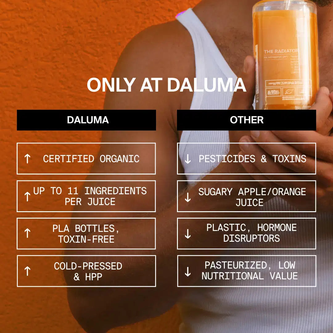 Der The Radiator ist bio, kaltgepresst und nicht pasteurisiert, um die natürlichen Eigenschaften der Zutaten zu erhalten. Er wird nachhaltig in bio-kompostierbaren Flaschen abgefüllt und kommt ohne Zusatzstoffe aus.